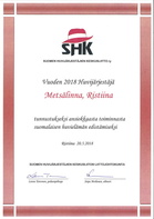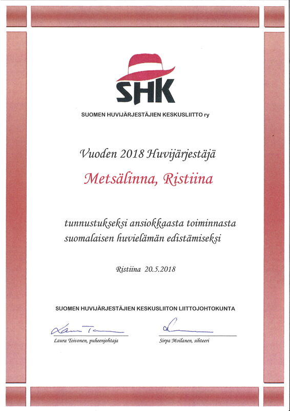 Suomen Huvijärjestäjien keskusliitto palkitsi Ristiinan Metsälinnan 20.5.2018 kokouksessaan Metsälinnassa vuoden 2018 Huvijärjestäjäksi. Perusteina pitkäjänteinen työ tanssikulttuurin edistämiseksi sekä laajat investoinnit Metsälinnaan.